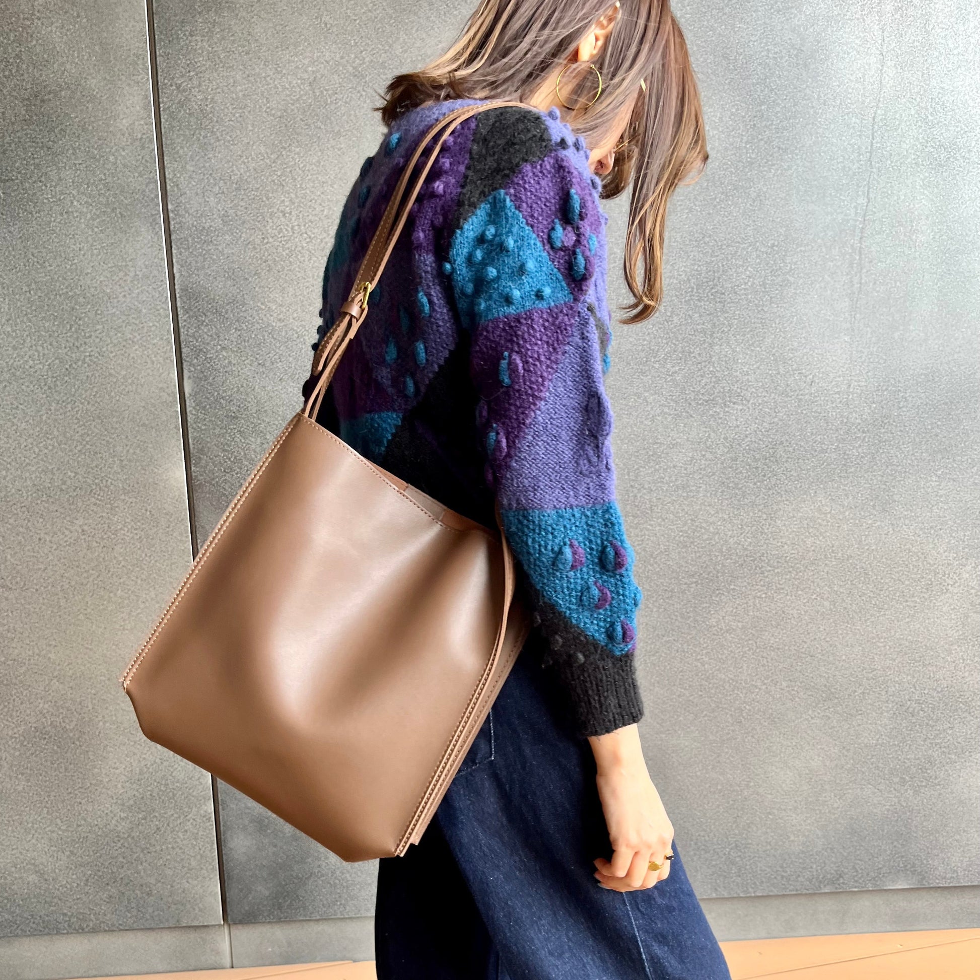 肩掛けも可能な長めのハンドルで、コートの上からもすっきり持てます。