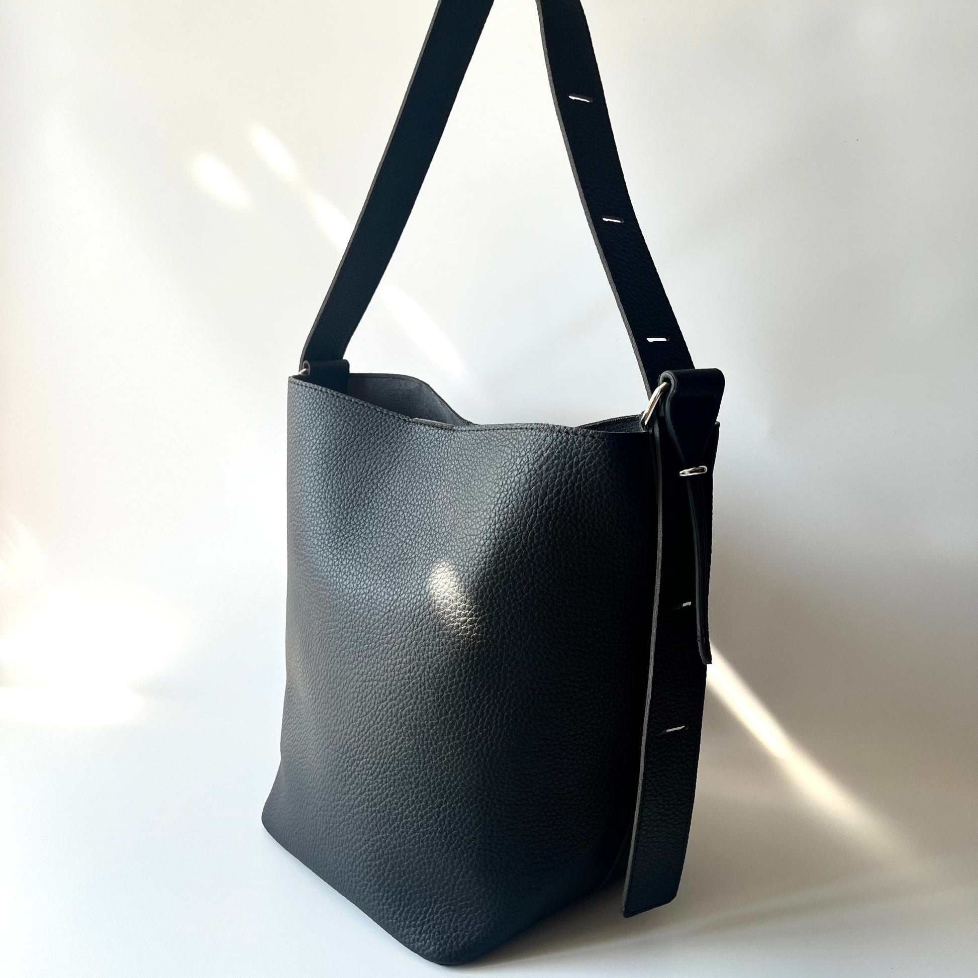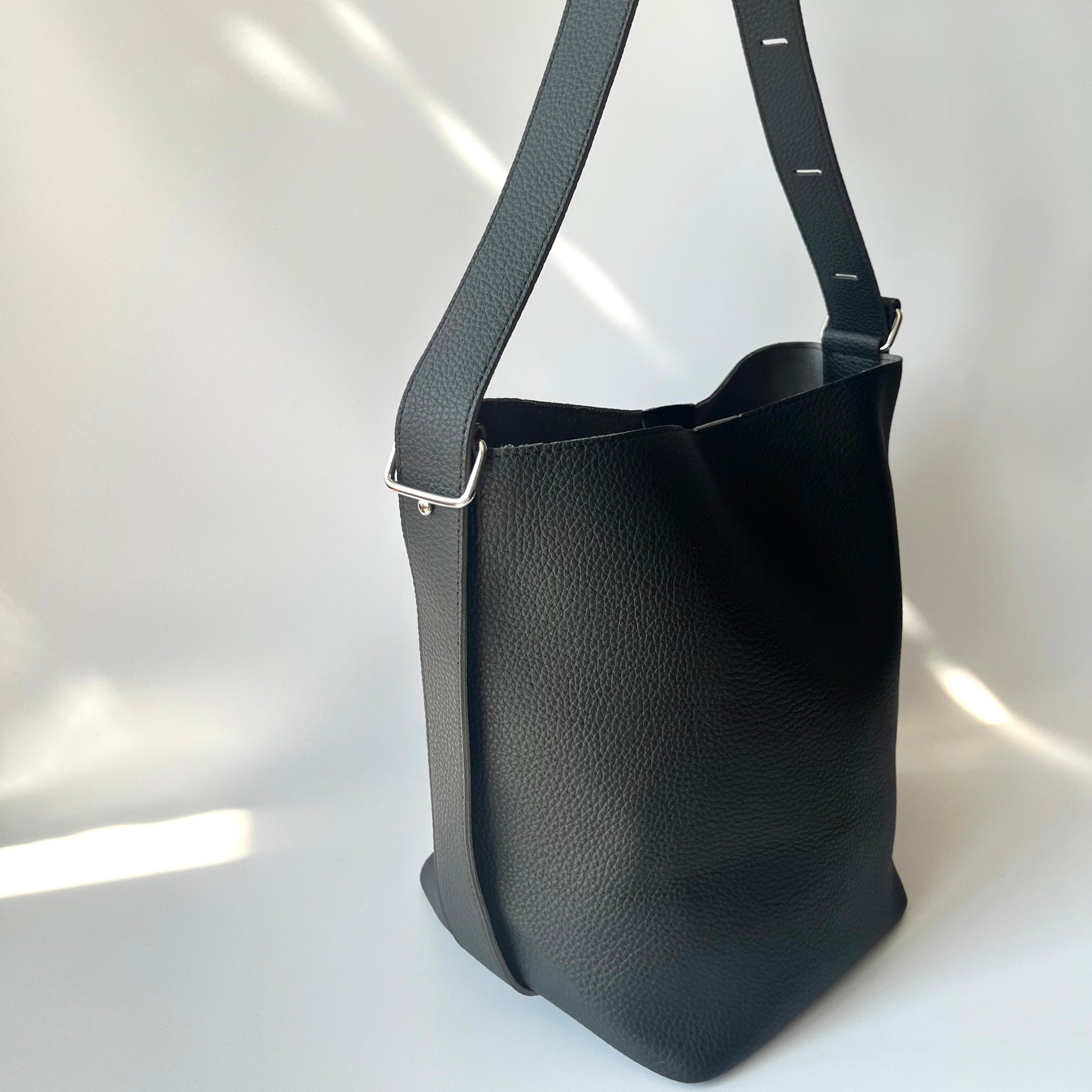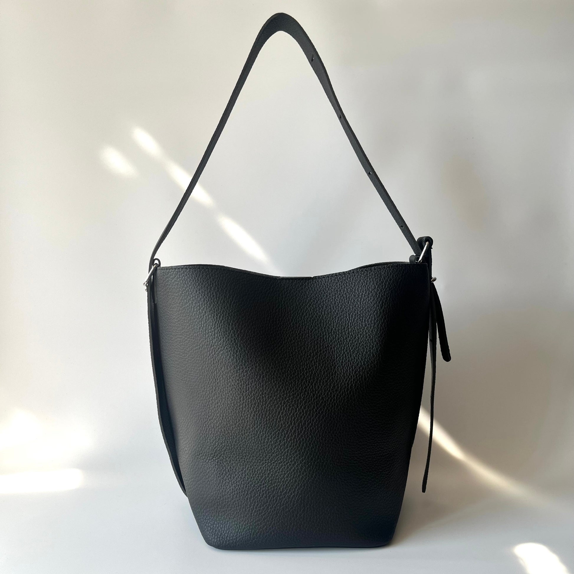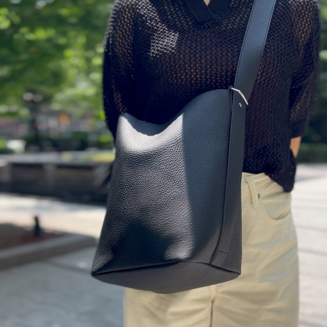 洗練されたバケットフォルムで、荷物が多くても上品さをキープ。カジュアルになりすぎないから、通勤にも、休日のお出かけにも大活躍してくれます。