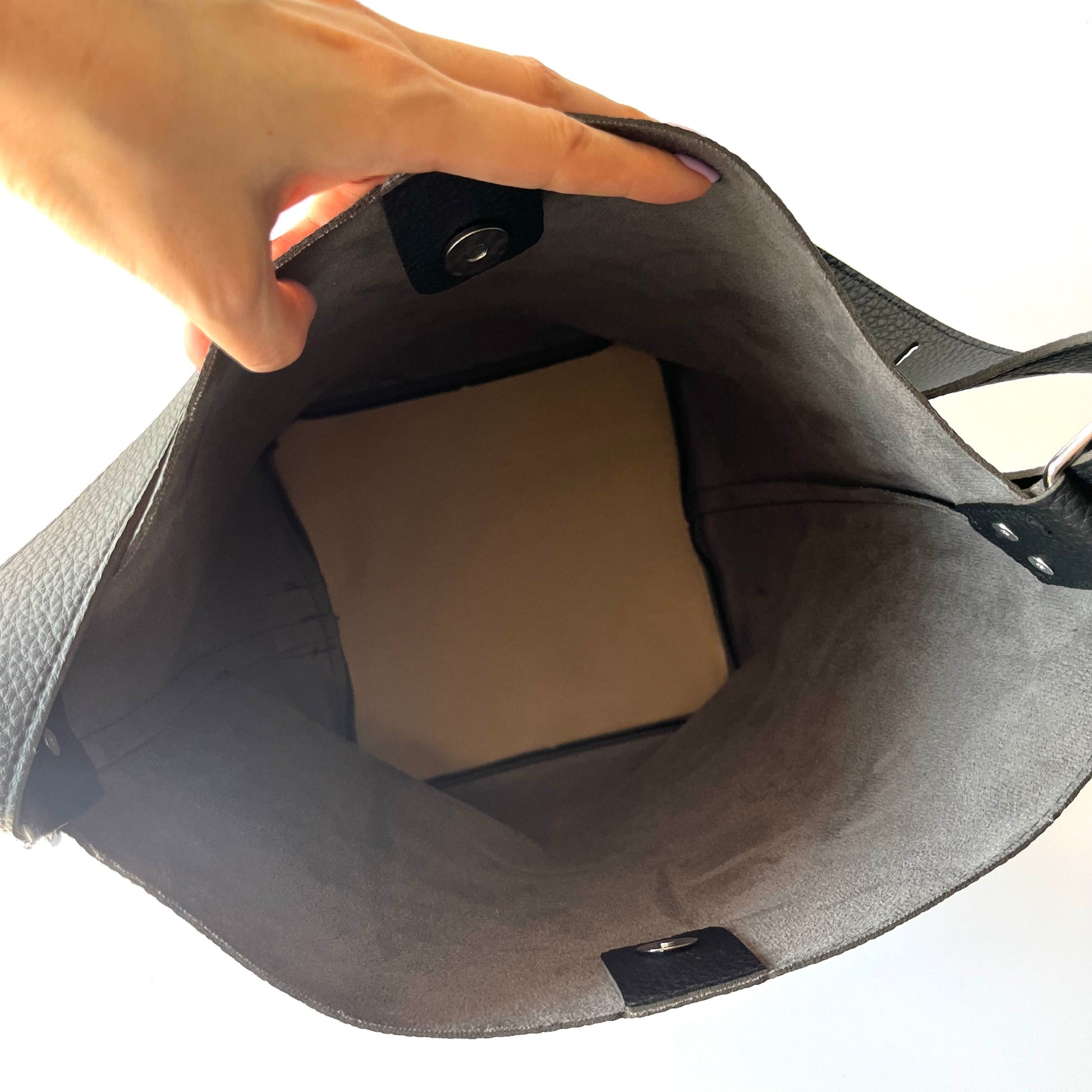 この『Bibi』の最大の魅力は、「大容量」と「使いやすさ」。 広々とした開口部は、まるでバスケットのように何でもポンポンと入れられるため、荷物の出し入れが驚くほどスムーズです。