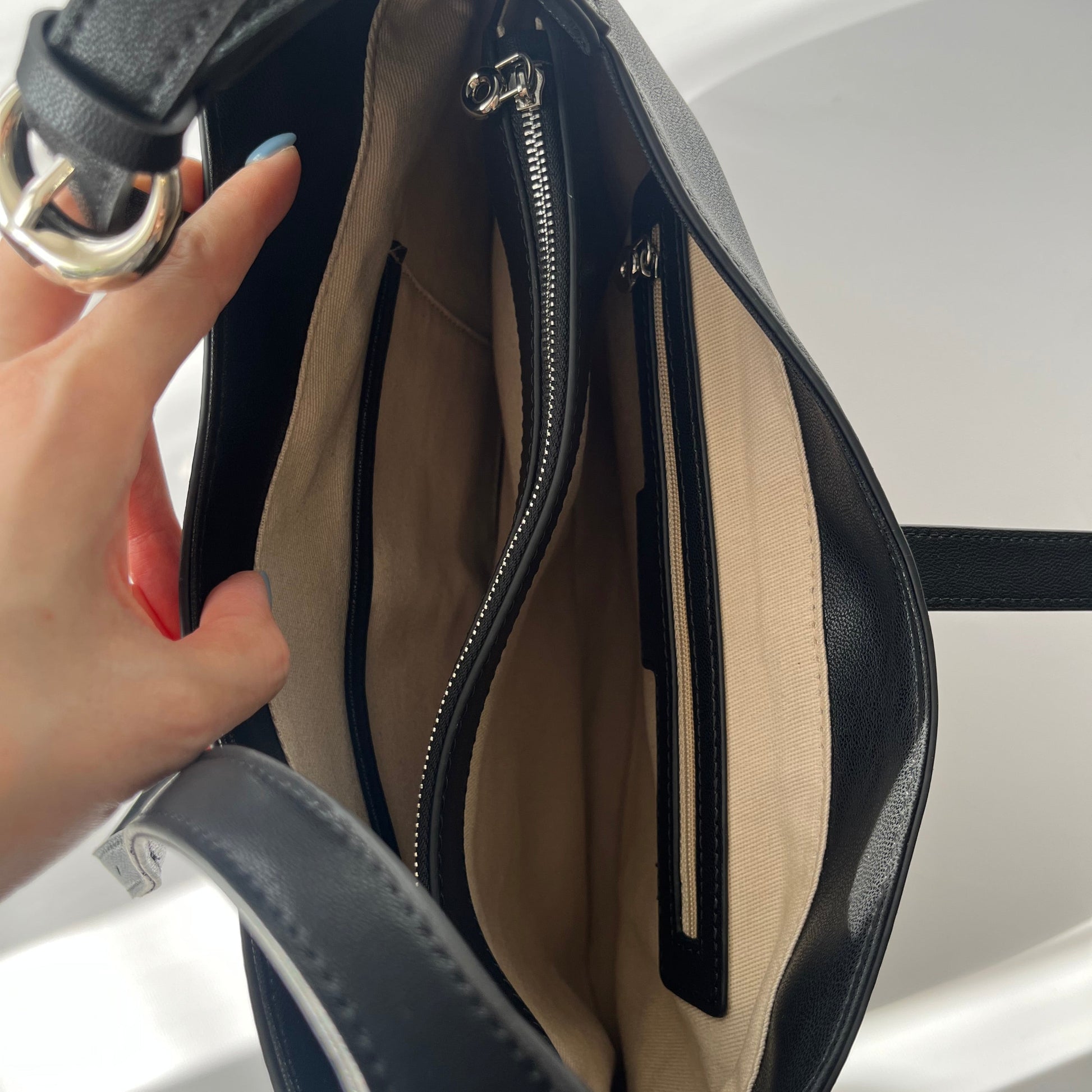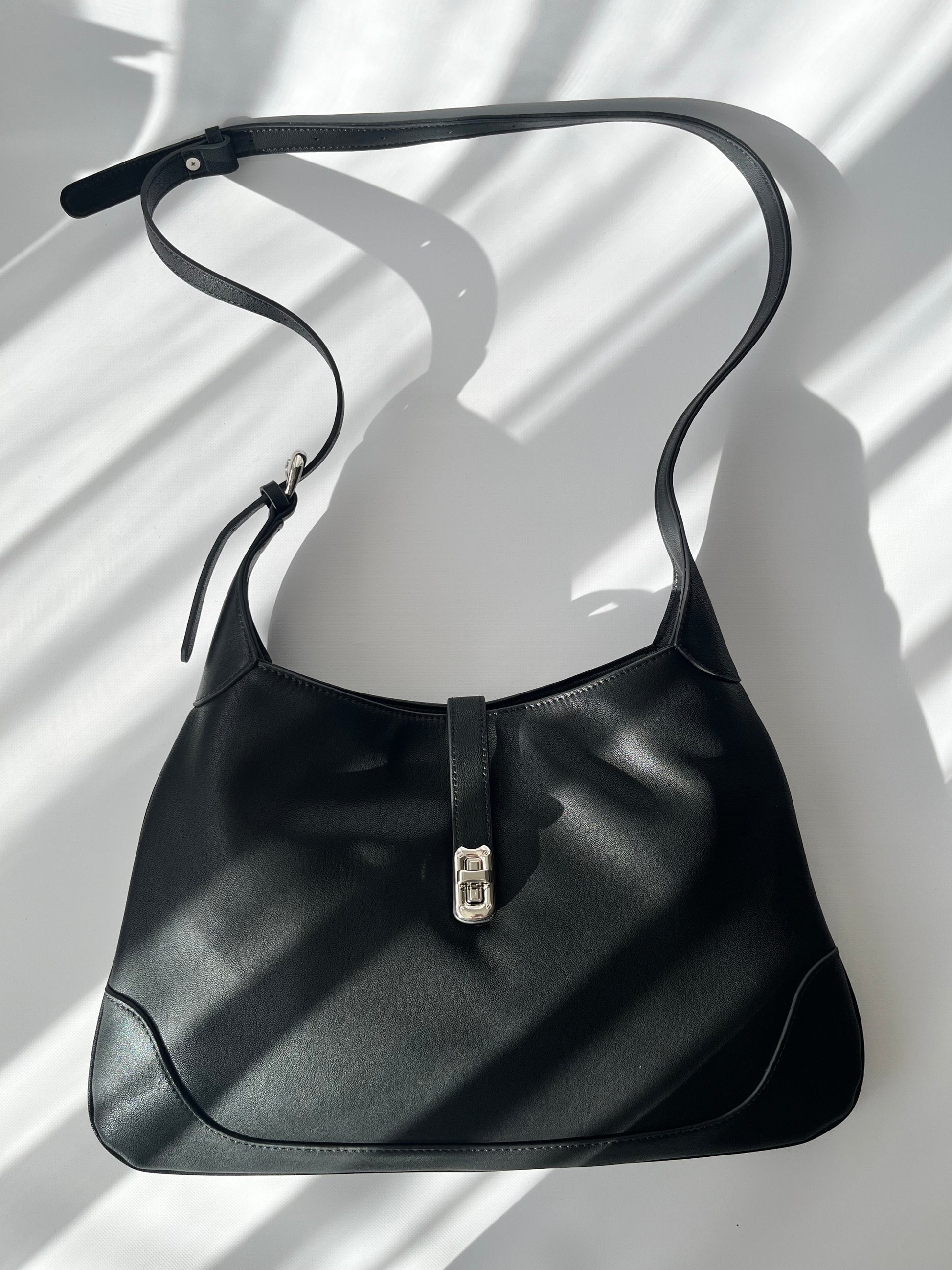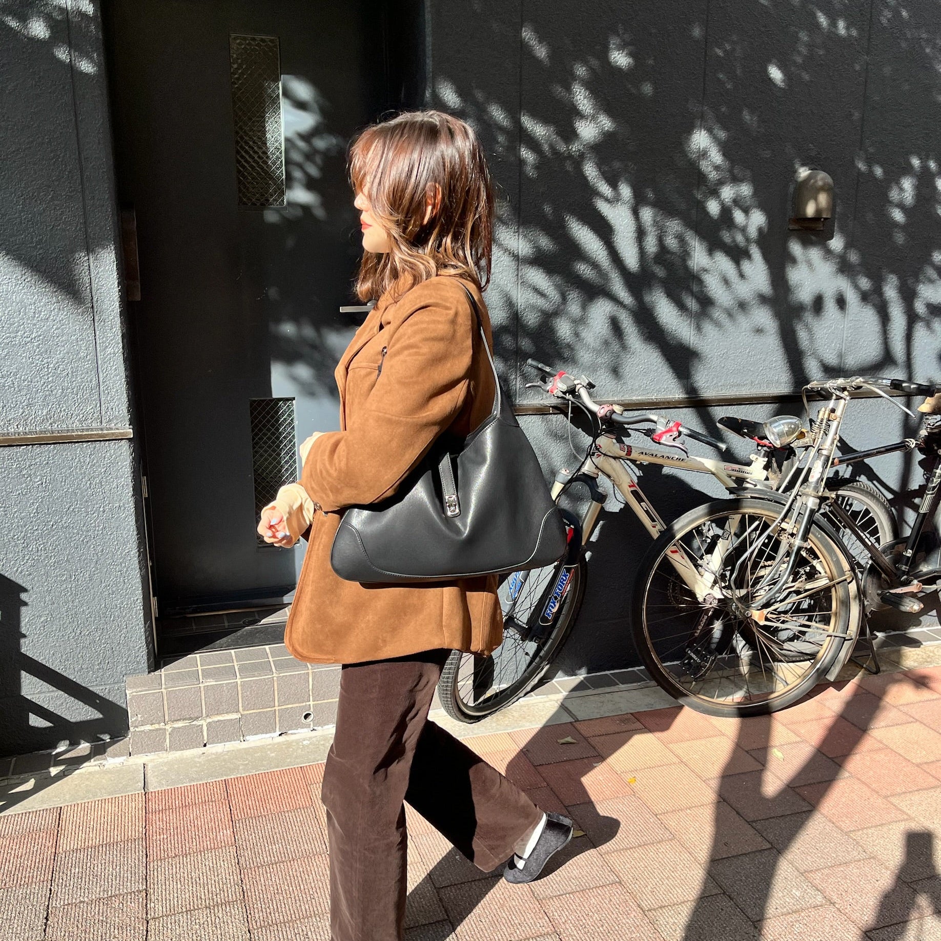 マチはありませんが、財布・スマホ・ポーチなど、日常の持ち物はしっかりと収まるサイズ感。肩にかけたときのシルエットが自然にきれいに決まり、シンプルな服装でも雰囲気が整います。